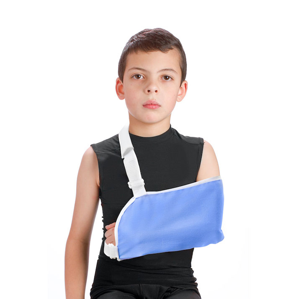 - Elaborado en tela de algodón, reatas y bondeado en poliéster, diseñado para brindar un soporte en traumas e inestabilidad, con inmovilizador circular a la espalda, indicado en fracturas, esguinces y lesiones de hombro y codo.