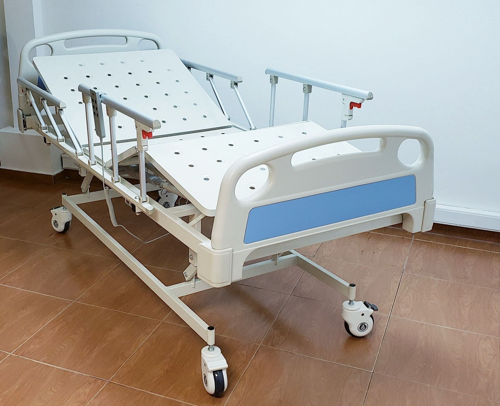 Cama hospitalaria ELECTRICA de tres funciones (elevación de espaldar, elevación de rodilla, y altura del suelo).