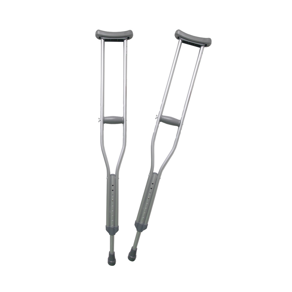 Esta muleta convencional en aluminio de color gris cuenta