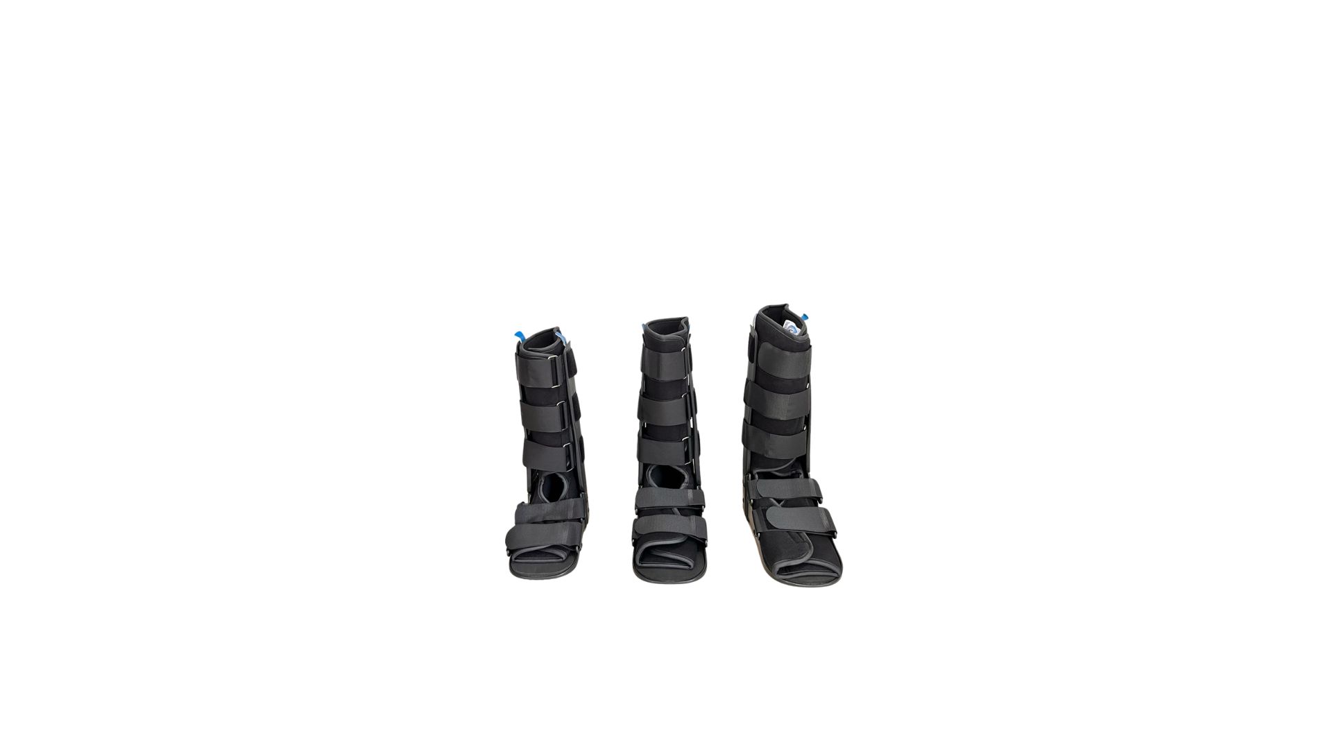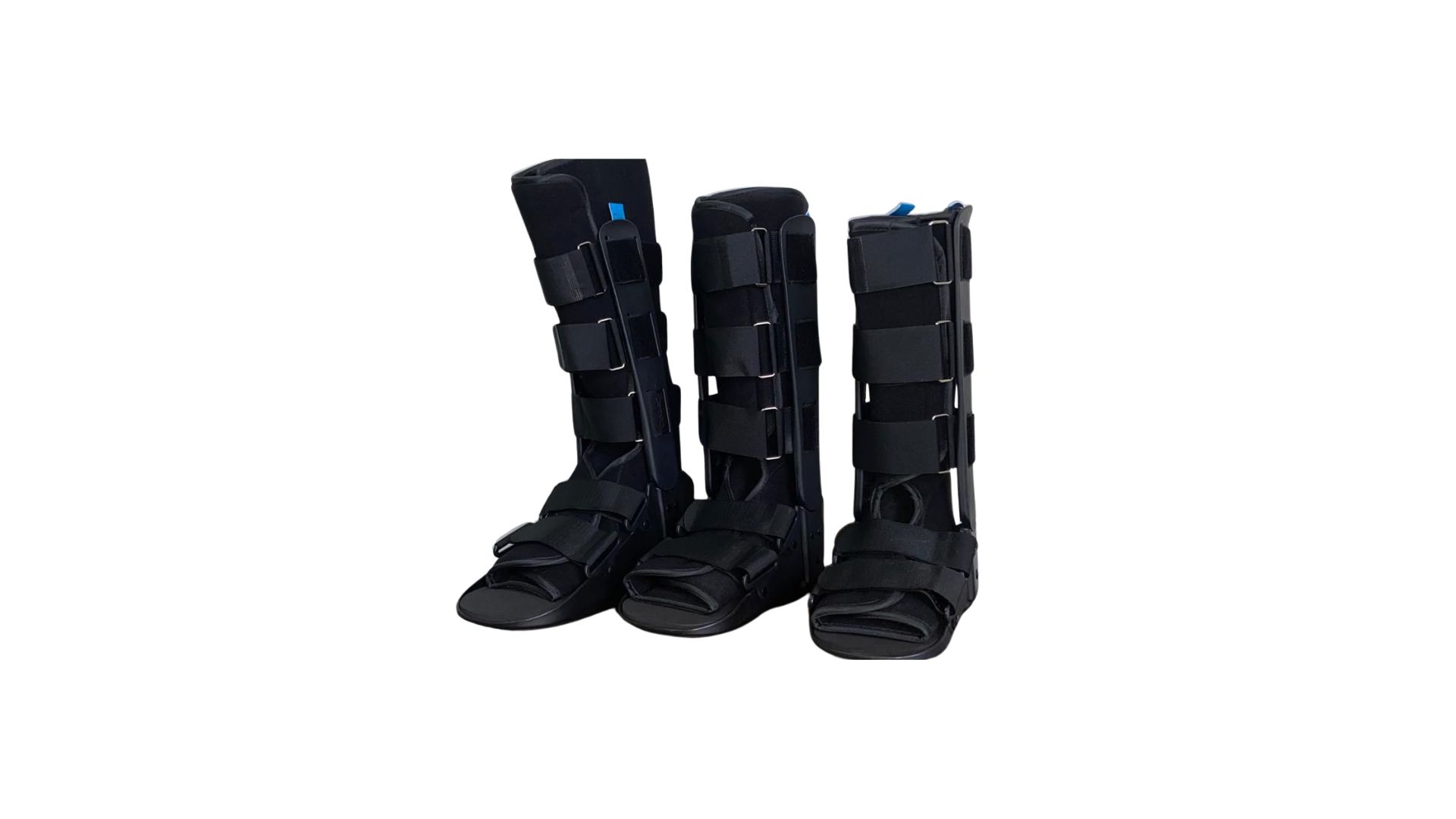 - Walker rígido de tobillo diseñado en tela bondeada, férulas estabilizadoras, correas de cierre de contacto krik, con almohadillas ajustables al tobillo.