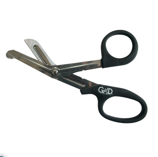 Tijera GMD ideal para ser usada en atención pre-hospitalaria, primeros auxilios, cuidado en casa y hospitalaria NO relacionada con ambientes quirúrgicos.